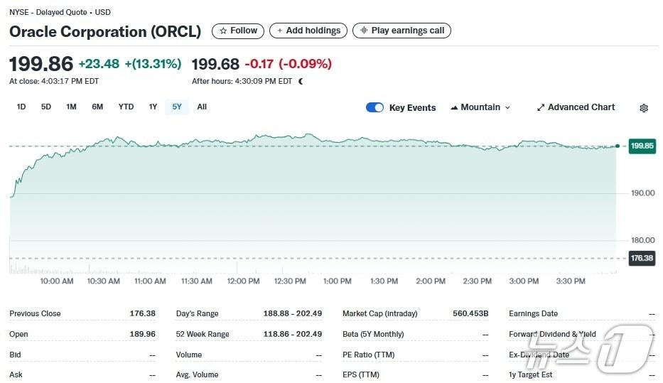 오라클 일일 주가추이 - 야후 파이낸스 갈무리관련 키워드오라클실적발표클라우드서비스박형기 기자 18일 오전 6시 마이크론 실적 발표, 또 AI 주 급락하나中 GPU 업체 메타X 상장 첫날 주가 755%까지 폭등관련 기사오라클 전일 13% 폭등 이어 오늘도 8%↑ 주가 사상최고(상보)엔비디아 반등에 '19만닉스' 회복…"AI 수요 견고" [핫종목]