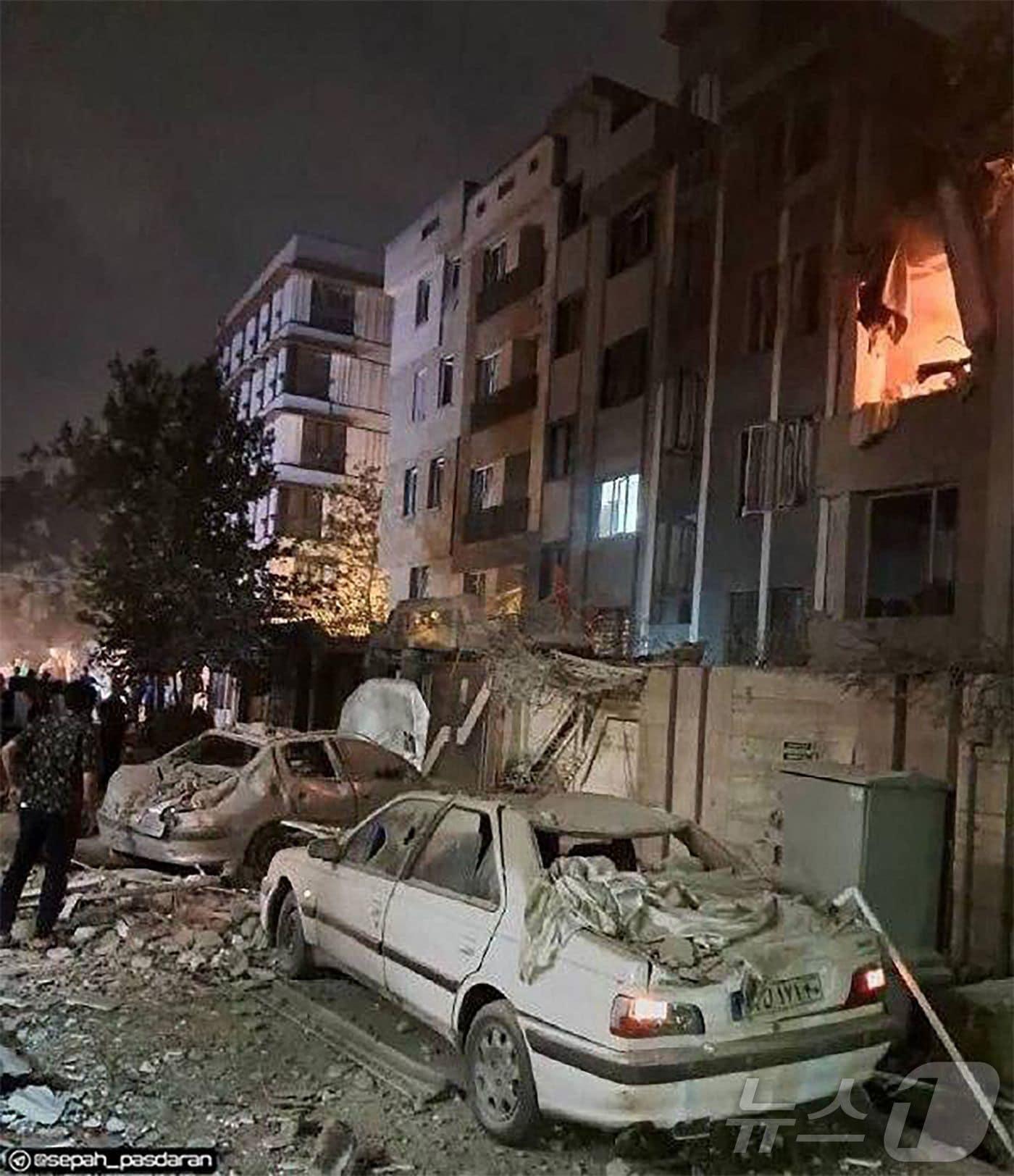 이스라엘이 13일(현지시간) 새벽, 이란 핵프로그램 및 군사 시설에 선제 타격을 벌이면서 이란 수도 테헤란에서 건물들과 차량들이 파손됐다. 2025.06.13 ⓒ AFP=뉴스1 ⓒ News1 최종일 선임기자