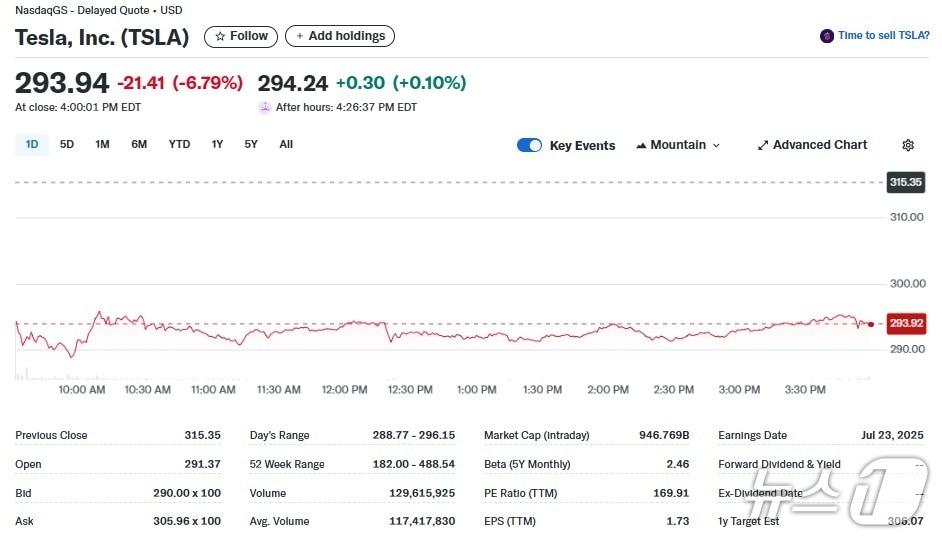 테슬라 일일 주가추이 - 야후 파이낸스 갈무리도널드 트럼프 미국 대통령과 일론 머스크 테슬라 최고경영자의 미니어처. 2025.7.1 ⓒ 로이터=뉴스1 ⓒ News1 김경민 기자관련 키워드테슬라머스크트럼프미국당창당박형기 기자 18일 오전 6시 마이크론 실적 발표, 또 AI 주 급락하나中 GPU 업체 메타X 상장 첫날 주가 755%까지 폭등관련 기사작년 한해 500대 부호 재산 3200조 불어…1위 머스크 270조 ↑美국무부, 韓정보통신망법에 "심각한 우려"…통상마찰 비화 우려(종합)美국무부 "韓 허위조작정보근절법, 기술협력 위태롭게 할 우려"'킹메이커의 귀환'…트럼프-머스크 화해는 '차기 주자' 밴스 작품"머스크 정부효율부 주장 '지출절감' 대부분 허위…오히려 늘어"