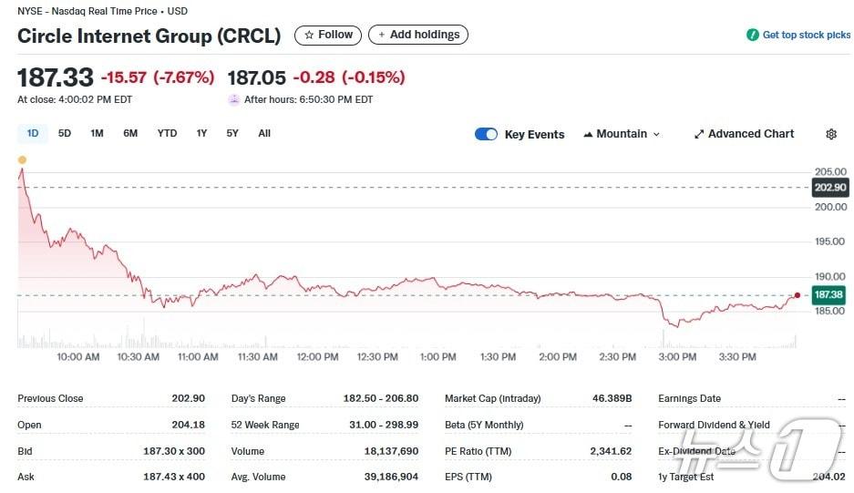 서클 일일 주가추이 - 야후 파이낸스 갈무리관련 키워드Blockchain서클스테이블코인미즈호증권박형기 기자 18일 오전 6시 마이크론 실적 발표, 또 AI 주 급락하나中 GPU 업체 메타X 상장 첫날 주가 755%까지 폭등관련 기사서클 오늘도 5% 급락, 지난 5일간 18% 폭락원화 스테이블코인도 해외 블록체인으로…서클 '아크'에 몰린 韓 기업들[기자의 눈]서클 사장의 국빈급 방한, 'K-스테이블코인 거품론'의 민낯'서클 방한 북새통'에도 스테이블코인 제도화는 '엇박자'…"골든타임 놓칠라"원화↔USDC 환전 쉬워지나…'광폭행보' 서클, 한국 기업과 어떤 협업할까