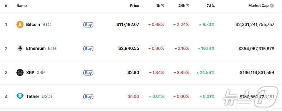 이 시각 현재 주요 암호화폐 시황 - 코인마켓캡 갈무리관련 키워드Blockchain비트코인이더리움리플차익 실현박형기 기자 18일 오전 6시 마이크론 실적 발표, 또 AI 주 급락하나中 GPU 업체 메타X 상장 첫날 주가 755%까지 폭등관련 기사스테이블코인 전성시대…이더리움, 비트코인 넘나[2026 코인 시장 전망]②저가 매수, 암호화폐 일제↑ 비트코인 8만8000달러 회복(상보)BOJ 금리인상 공포, 비트 8.6만달러 붕괴-관련주 일제 폭락(종합)위험 회피, 비트 8만6000달러 붕괴-리플 1.88달러까지 추락(상보)저가 매수, 비트코인 8만9000달러 회복…9만달러 돌파 시도